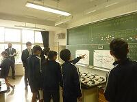 11月8日(月)校内研究授業が行われました。1校時に理科室で中堅研として福島教諭が「回路の電流」という単元の中で電流の大きさについて各自で予想を立て、各班で検証する実験を行う理科の授業を展開しました。研究授業には教育委員会指導課より指導主事が来校し、授業後に指導・助言を受けました。2校時には3年目研として濱田教諭が1年生で国語科の教員の参観のもと「写真で『事実』を表現する」という単元についてタブレットを活用し、4枚の写真を並べ替えてオリジナルのストーリーを作成する国語の授業を展開しました。1校時も2校時も生徒はいつも以上に張り切って取り組んでいました。