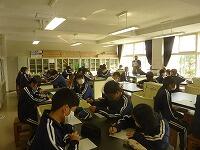 11月8日(月)校内研究授業が行われました。1校時に理科室で中堅研として福島教諭が「回路の電流」という単元の中で電流の大きさについて各自で予想を立て、各班で検証する実験を行う理科の授業を展開しました。研究授業には教育委員会指導課より指導主事が来校し、授業後に指導・助言を受けました。2校時には3年目研として濱田教諭が1年生で国語科の教員の参観のもと「写真で『事実』を表現する」という単元についてタブレットを活用し、4枚の写真を並べ替えてオリジナルのストーリーを作成する国語の授業を展開しました。1校時も2校時も生徒はいつも以上に張り切って取り組んでいました。