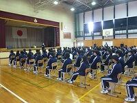 3月22日(火)午前より雪が降り始めました。積る気配は感じませんが、下校時には注意してい帰宅するよう声をかけたいと思います。外での授業はできませんので1年生の体育では男女合同で体育館で長縄跳びを行っていました。明日は大掃除、給食の最終日です。