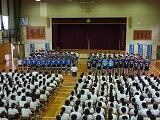 部活動壮行会が行われました。それぞれの部が部長中心にまとまり、最後の大会やコンクールに向け決意を述べました。その中で「感謝」が多く述べられ、自分たちだけではなく、周りの人に支えられての「今」を実感していました。「最後まであきらめない」精神で臨んでほしいと思います。