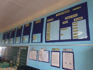 5月19日(火)1年生の教室環境の様子です。ほぼ完成し、あとは新入生の皆さんの名前が入ったり、活動した記録や写真等が掲示されるのを待つのみです。6月1日の入学式が待ち遠しいです。本日、臨時の職員会議が行われ、今後の各学年の登校日や入学式、6月1日以降の再開日程等について決まりました。詳細は「すくすくめーる」とホームページのお知らせでこの後に連絡いたします。