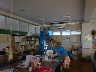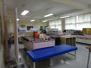 5月16日(土)今日は職員室内で工事(左上の写真)が行われています。それ以外の写真は保健室の移転についての写真です。保健室でも工事が行われるため仮の保健室を調理室にすることになりました。現在、備品等を運び出しているところです。工事が終わり次第、もとの保健室に再度、移転作業を行います。事務室も工事予定がありますので仮事務室を2階の応接室にする予定です。