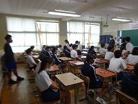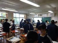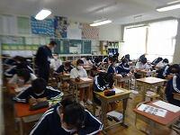 10月21日(水)今日は数学の授業の紹介です。まず最初の3枚の写真は単元テストや小テストの様子です。今学期も期末テストだけですので単元ごとや毎授業でのテストを数学科は各学年とも行っています。次の3枚の写真は1年生の数学4時間のうち3時間がティームティーチングで職員2名で指導にあたっている様子です。次の2枚の写真は2年生の数学の授業です。教え合い等、席を移動して解答の確認をする授業が頻繁に行われています。最後の授業は10月から3年生の放課後の補習と授業での支援のために学習サポーターを県よりつけていただいています。大学生の古賀さんに週3回来ていただいています。