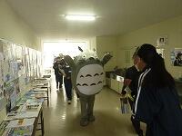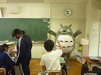 10月25日(月)後期開始です。校内にトトロが現れました。誰が入っているのでしょうか。廊下や教室に登場すると「誰」「誰」と生徒達も喜んでいました。ちょうど1年生の英語の授業で発表会が行われていました。最後にクラスのみんなに質問をするコーナーがありました。Who is this? トトロの中に入っていたのはALTのシルバ先生でした。毎年、各学校でハロウィンが近づくと仮装して授業に参加されているそうです。