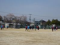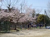3月27日(土)満開の桜をバックに春休みの部活動が今日も元気に行われています。体育館では男子バレー部、テニスコートでは男子テニス部の送別試合が行われ、保護者の方も応援に来校されています。