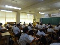 9月2日(水)3年生は制服で第2回実力テストを受けています。どのクラスも真剣な表情で取り組んでいました。今回から1・2年生の内容にプラスして3年生の内容も入ってきています。次回の第3回は10月5日の予定です。日々の家庭学習を計画的に進めてほしいと思います。