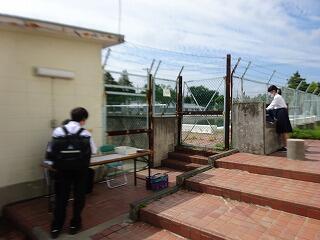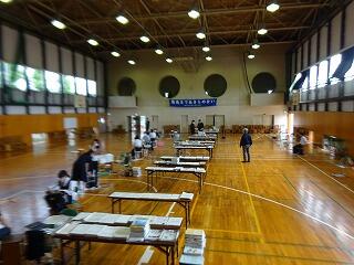 まずプール側の入り口前の受付を通ったら手を洗って体育館に入場します。体育館には各クラスの待機場所と課題の受け取り場所、担任との面談場所を三密を避ける形で設定しました。予定の時間より早目に登校した生徒もいますが、ほぼ予定通りに面談形式で進行しています。