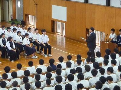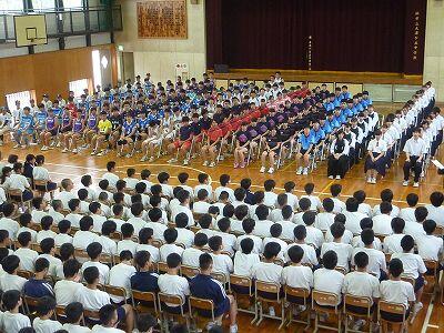 柏市総合体育大会や各種発表会等に向けての壮行会が開かれました。3年生にとっては最後の大会になります。どの部活動の発表も,大会に向けての意気込みが伝わってきました。大会では,今までの練習の成果が十二分に発揮され,各部の目標が達成できることを願っています。
