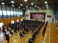 4月5日(月)雨の始業式となりました。本校は新学期準備のため午後より始業式(着任式を含む)を行いました。式では生徒会長の話、生徒指導主任の話、校長の話と職員紹介がありました。2・3年が初めて椅子を入れて集まった式でしたが、大変集中して静かな式となり着任された先生方への温かい拍手もありました。その後、3年生が先に退場し、2年生は残ってクラス発表をしてから移動している様子です。いよいよ新学期の開始となります。新学期の教育活動へのご理解とご協力をお願いいたします。
