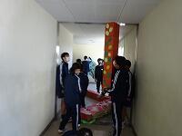 3月3日(水)6校時の学級活動の様子です。1年生は全員で3年生の2階の廊下を装飾していました。明日、登校する3年生は驚くことでしょう。2年生も3年生に向けての掲示物づくりを3学期の振り返りと並行して行っていました。明日の3年生を送る会は13:30より全員がクラスで着席した状態でプロジェクタースクリーンで各学年の発表を視聴する予定です。どんな発表を見ることができるのかとても楽しみです。