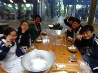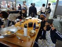 10月9日(金)1年生の校外学習を清水公園で行いました。出発から雨天のため予定していたアスレチックは中止となりました。入り口で集合写真を撮り、キャンプ場で係の方から説明を受けからてカレーづくりを開始しました。炊事場所や食事場所は屋根があり、風もなかったので火おこしや調理は、天気の時に比べれば時間がかかったかもしれませんが、無事に全班がカレーをつくりあげ、久しぶりの会食を楽しみました。本来は雨天の場合、学校に戻って体育館で学年レクの予定でしたが、朝の渋滞を含め、片付けが終了するまでにかなり時間を要したので体育館で到着式を行って解散となりました。学年レクは後日に時間をとって行います。一日、雨の中で疲れたと思いますので土日にしっかり休養し、月曜日は元気に全員が登校してほしいと思います。