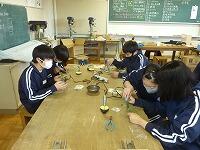 2月17日(木)1・2年技術・家庭科の授業の様子です。1年生はトートバックがいよいよ完成間近でバックとしての形が出来上がっていました。2年生は金属加工によるペン立てからラジオ製作に移りました。今日ははんだ付けの練習を行っていました。