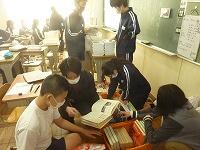 2月22日(火)1年生の国語で濱田教諭による校内研究授業が行われました。「近代作家のリーフレット作成しよう」という課題で便覧や図書館の蔵書、タブレットを活用して調べ学習に取り組んでいました。青木学校図書館指導員の協力により近代の著名な作家の本が沢山、教室に届いていました。本でじっくり調べることも大切だと思います。どんなリーフレットが完成するか楽しみです。