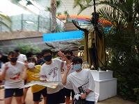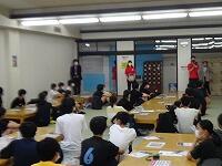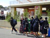 10月16日(金)3年生の修学旅行代替行事が無事に終了しました。6時に登校し、6:30に出発、行きも帰りも途中休憩は友部SAのみで現地へ直行。1・2・3組は薄磯地区で語り部さんから震災講話を受け、4・5・6組は久之浜地区で語り部さんからの震災講話やふれあい会館の防災センターの見学を行いました。写真は6組が語り部さんの案内でバスの中や街の中、ふれあい会館で震災当時の体験を聞かせていただいた様子です。誰一人おしゃべりすることなく、真剣に聞いていました。その後、ハワイアンズに移動。入り口やレストランで消毒・検温をし入場、バイキングもビニール手袋着用で各自が料理を選ぶ等、感染症対策は徹底されていました。3月の休校前以来の会食の形式に生徒達は喜んでいました。食後は着替えて宝探しの説明を受けました。宝探しは難易度の高いゲームでスマホの機能を使いながら問題を解いて進まなければならず、班で協働して取り組むには最適にゲームでした。多くの班が苦戦していましたが、高得点をあげた3つの班は表彰され、賞品をもらいました。最後は買い物です。3000円分のクーポン券をもらいましたので有効に活用できたようです。出発が遅れた分,到着が19時になってしまいましたが、元気に解散できてよかったと思います。保護者の皆様には早朝から送迎等にご協力いただきありがとうございました。今後もご支援よろしくお願いいたします。