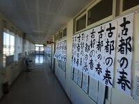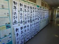 1月13日(水)空気は冷たいのですが、昨日とは違って暖かい陽射しが校舎に差し込んでいます。学年の各階の廊下に書初めが掲示されています。3年生は「福寿草の花」、2年生は「新年の計画」、1年生は「古都の春」です。なかなかの力作が沢山掲示されています。今週中に国語科の教員で審査が行われる予定です。