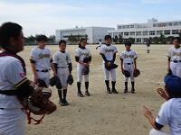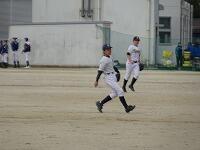 11月1日(日)本校のグラウンドが野球の1年生大会の予選ブロック会場となりました。本校野球部1年生の塙選手が1名で沼南連合(大津・風早・二松學舍・手賀)に出場し、セカンドとして守備、攻撃、走塁で大活躍し、連合チームに貢献しました。