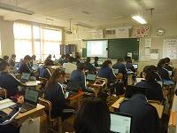 12月17日(金)学年の活動の時間の様子です。1年生は学年レクの会場を体育館に変更して長縄跳びを行いました。13回連続跳んだ6組が優勝しました。2年生は校外学習のまとめとしてタブレットを使って新聞を作成していました。3年生は別室で集団面接の練習や各教室で志願理由書や作文を書いたり、相互に面接をしたりしていました。本日で入試相談も終わり、3年生の進路もいよいよ大詰めとなってきました。来週は22日に給食終了、23日が冬季休業前全校集会(2学期終業式)となります。土日は不要不急の外出は避け、健康と安全に留意して過ごしてほしいと思います。