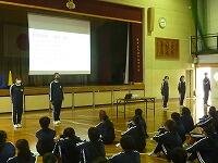 12月1日(水)6校時に体育館で2学年が校外学習に向けての学年集会を行いました。12名の字実行委員が校外学習に向けての決意をまず述べ、つぎに5人の部会長から注意事項等の話がありました。その後、隊形練習等が行われました。12月7日(火)川越でどんな班別行動ができるのか大変楽しみです。