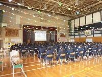 3月8日(火)5校時に3年生を送る会を実施しました。3年生だけが体育館に入り、他学年は教室のスクリーンでの鑑賞となりました。生徒会の開会式の後、1年生の発表、2年生の発表と続き最後に3年生の発表を各学年とも映像で行いました。1年生は3年生に関わった先生方に扮して登場したり、体育祭の応援団演舞を復活させたり、書道パフォーマンス等で3年生を沸かせました。2年生は人気テレビ番組の内容を真似て各クラスのエピソードを演じたり、漫才があったり、歌声コンクールの復活や3年生の先生方のエピソード紹介等で3年生の爆笑をさそいました。直接、3年生が喜んでいる姿を1,2年生に見てもらうことが出来なかったのですが、閉会式の3年生の大きな拍手は1,2年生に届いたと思います。1・2年生の皆さん、3年生のために本当にありがとうございました。最後の3年生の発表も時間のない中での製作でしたが、さすが3年生のいう完成度で後輩へのメッセージはしっかり伝わったと思います。今日の発表はまさに今年の目標の一つであるクリエイティビティを大いに発揮したものでした。次年度こそ全校で集まって送る会ができることを切に願います。明日は卒業式予行を行います。