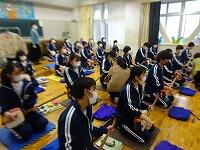 1月27日(水)3年生の3クラスで「三味線体験教室」が行われました。明日28日(木)も残りの3クラスが体験し、最後に学年で鑑賞会を行う予定です。今回も例年お世話になっている杵家会の杵家弥佑様を講師にお迎えしました。三味線の構造や扱い方、所作をご指導いただき、実際に簡単な演奏まで慣れない正座をしながら学習することができました。本年度、体験的な学習が少なくなってしまった3年生にとって大変貴重な機会になりました。明日の鑑賞会も楽しみです。