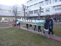 11月17日(水)6校時に3年生のリーサルがありました。すでに他の学年もリハーサルを終え、いよいよ明日が本番となります。昨日の3年生はグラウンドで練習していました。今日の6校時は1・2年生も最後の追い込みの練習を行っていました。最終下校後に延長して取り組んだ美術部がパネルを昇降口に飾り、体育館にコンクールの看板を搬入しました。最後に取り付けを職員で行っています。撮影関係の業者さんも来校して準備が始まっていました。明日の発表が楽しみです。