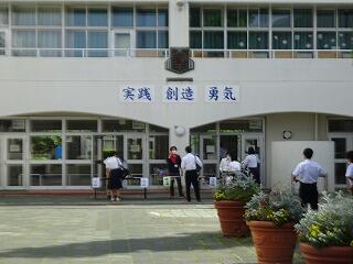 5月25日(月)3年生は午前を三分割して登校しています。最初の各クラスのグループの様子です。登校したら昇降口前で健康観察の確認後に手洗いをしてから教室に入ります。学級活動が終わったら体育館に移動して聴力検査を行って下校します。次回の登校は学校再開の6月1日(月)からの分散登校となります。本日の学級活動で分散の仕方が説明され、お知らせ等も持ち帰ると思いますのでご確認ください。明日は2年生の三分割登校です。