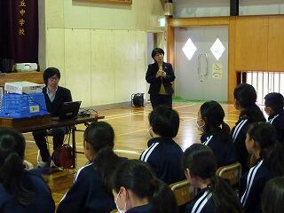 本日,6校時体育館にで1年生を対象に助産師の方をお招きして「思春期の心と体」をテーマに性教育が行われました。中学生のこの時期に起こる体の変化や心の変化についてスライドを使いながらわかりやすくお話しいただきました。どの生徒も真剣なまなざしで聞き入っていました。