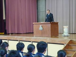2学期の終業式。学年代表や生徒会長から2学期を振り返っての言葉が発表され,校長先生からは各行事や部活動等での生徒のみなさんの活躍をたたえるお言葉をいただきました。新年を迎えるにあたって,今年の反省と来年の目標を決めてほしいと思います。