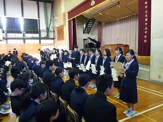 夏休み以降に各部門で活躍した生徒や部活動の表彰と報告が行われました。