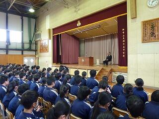 本日,6校時体育館にで1年生を対象に助産師の方をお招きして「思春期の心と体」をテーマに性教育が行われました。中学生のこの時期に起こる体の変化や心の変化についてスライドを使いながらわかりやすくお話しいただきました。どの生徒も真剣なまなざしで聞き入っていました。