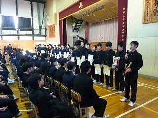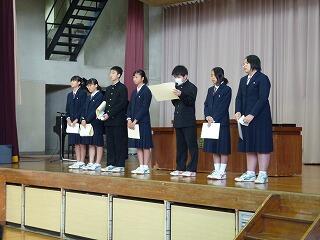 夏休み以降に各部門で活躍した生徒や部活動の表彰と報告が行われました。