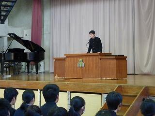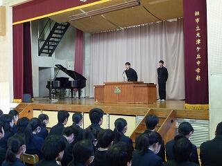 2学期の終業式。学年代表や生徒会長から2学期を振り返っての言葉が発表され,校長先生からは各行事や部活動等での生徒のみなさんの活躍をたたえるお言葉をいただきました。新年を迎えるにあたって,今年の反省と来年の目標を決めてほしいと思います。