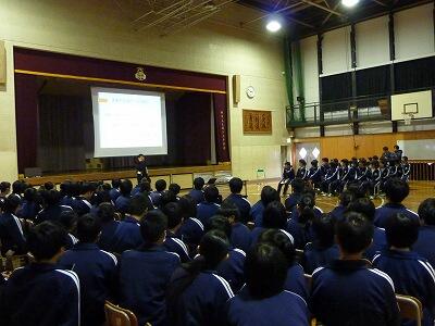 本日6校時に2年生が,来年度の修学旅行に向けてのスタート集会を行いました。担当の山田先生から,過去の修学旅行のこと宿泊するホテルのこと,これからの活動について説明がありました。また,旅行会社の方にいらしてもらい,奈良・京都についての説明がありました。修学旅行当日に向けてしっかりと取り組んでほしいと思います。