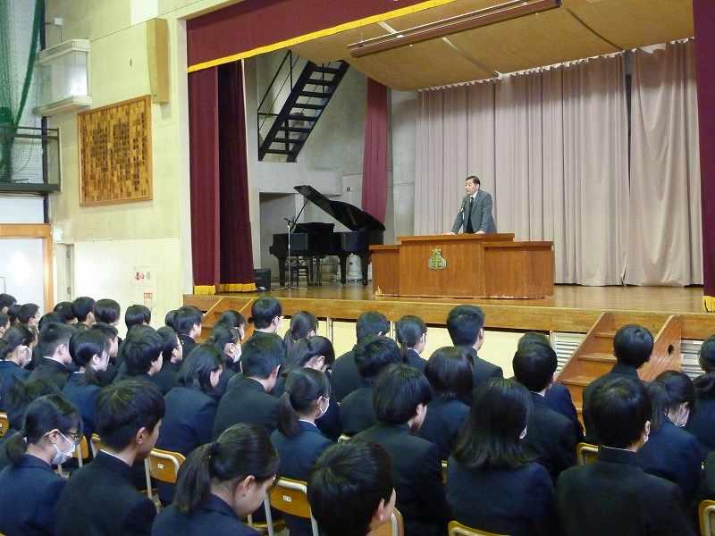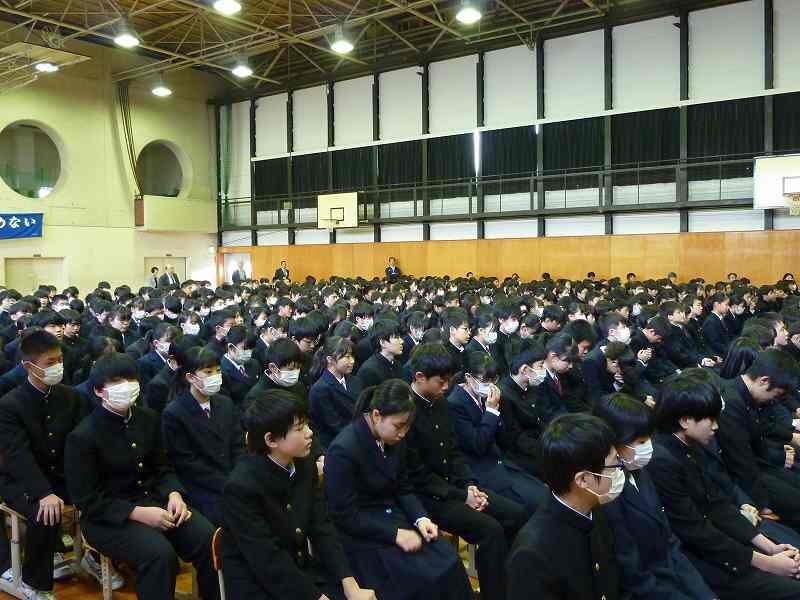 3学期の始業式が行われました。どの生徒も落ち着いた様子で式に臨むことができていました。校長先生からは,中学生にとって一番大切なのは,日々の生活を真面目に勉強や部活動などに取り組んでいくこと,生徒総会で決めた「生徒会スローガン『向上心~自ら進み 高みを目指せ~』」を意識しながら生活をしてほしいということの二つの話がありました。3学期は,1年間のまとめの学期です。この1年間にやり残したことはないか,もしあった場合には残りの3ヶ月でしっかり取り組み,来年度の準備をしてほしいと思います。
