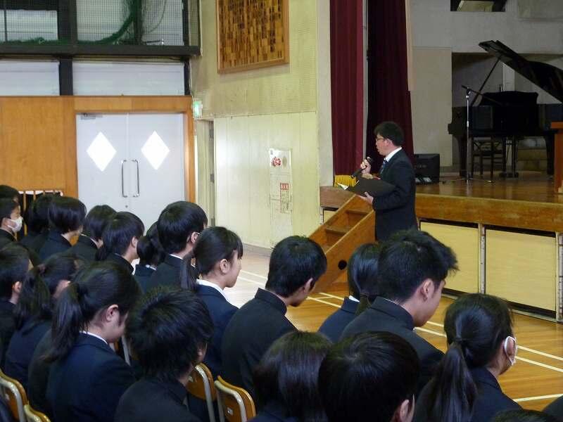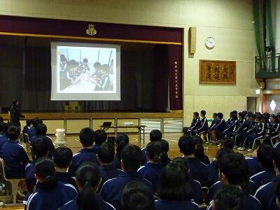 本日6校時に2年生が,来年度の修学旅行に向けてのスタート集会を行いました。担当の山田先生から,過去の修学旅行のこと宿泊するホテルのこと,これからの活動について説明がありました。また,旅行会社の方にいらしてもらい,奈良・京都についての説明がありました。修学旅行当日に向けてしっかりと取り組んでほしいと思います。