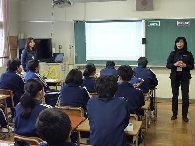 2年生で,本校SSW(ソーシャルスクールワーカー)池田先生の「ホウレンソウ(報告・連絡・相談)授業」が行われました。本日3クラス,30日に残りの3クラスが行われます)どのクラスの生徒も真剣に授業に臨み,さまざまな意見を出し合うことができていました。