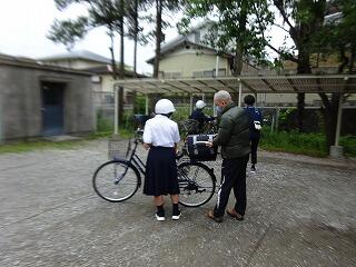 5月21日(木)雨が心配されましたが、午前は大丈夫でした。1年生だけでの初登校日の様子です。自転車で登校した生徒の中には歩道や右側通行等がありました。入学式の後に映像で自転車の乗り方について指導を行います。登校した生徒は先週の2・3年生と同じようにプール側の入り口の前でまず手洗いをします。受付後に待機場所にクラスごとに分かれて座り、提出物を用意します。その後、担任と一緒に配布物を確認し、面談を行う流れです。最後に出口前で養護教諭よ保健関係の書類の点検を受けて下校しました。自転車通学者は自転車置き場で点検を受けてから下校となりました。6月1日の入学式は良い天気になればと願っています。まだ一週間ありますので家庭学習の継続と体調管理をしっかり行い、1日は元気に登校してほしいと思います。