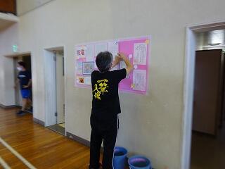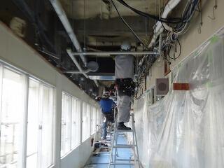 5月23日(土)本日も管理棟の2階職員室前と図書室前で工事が進行中です。6月1日の再開まで残り一週間になり急ピッチで作業が行われています。抜かれた壁も新しくはめられ、残りは天井となりました。今週はぐずついた天気でしたが、明日からは晴れてくるようです。運動不足になっていると感じたらぜひホームページの各学年動画の保健体育映像で体を動かしてほしいと思います。