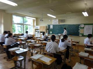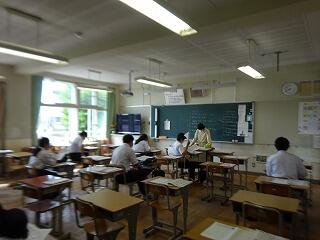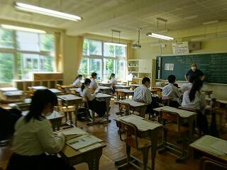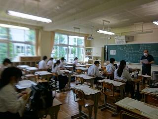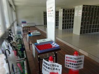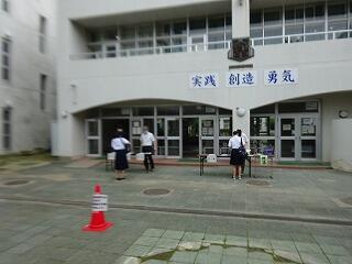 5月26日(火)2年生の三分割登校が終わりました。登校時の様子です。昨日の3年生と同じように昇降口前の受付を通り、手洗いをしてからクラスに入って学級活動を行いました。次回の登校は男女別の予定なので新組織づくりのために委員会の希望調査を行っていました。6月1日からの学校再開に関しての説明も受けて下校しましたが、ご家庭でも分散登校の内容をご確認いただければと思います。よろしくお願いいたします。ご不明の点がありましたら担任までご連絡ください。