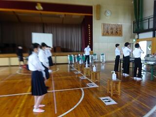 5月29日(金)朝から全職員で入学式の準備を行いました。入学式後の行事や部活動の紹介のために生徒会役員や各部長も登校してくれました。6月1日(月)の入学式を新入生の皆さんには楽しみにしてほしいと思います。また、6月1日より分散登校が始まります。3年生は女子、2年生は男子です。登校時間が正常日課とは違いますので間違えないようにお願いします。いよいよ学校再開です。