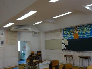 5月28日(木)コンピュータ室と第一音楽室・第二音楽室の空調工事が終了しました。すでにコンピュータ室は室内の整備も完了しました。照明もLEDになりとても明るい部屋になっています。音楽室は現在、室内の整備中です。新しい掲示物等が貼られていました。また、玄関前の事務室を空調工事のため2階の応接室に移転しました。御用の際には玄関前のインターホンをお使いください。