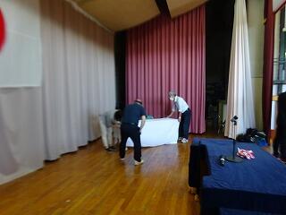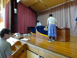 5月30日(土)本日も工事が続いています。午前中、PTA新本部役員の方の顔合わせがありました。写真は昨日のお昼前に壇上に飾る花鉢が届きましたので職員で並べている様子です。また、本日の午後にはご近所の伊藤様が演台を飾る花をいけてくださいました。例年、式の準備でお世話になっております。当日はお花にもご注目ください。あとは当日の朝に校旗を飾り、入学式の立て看板を正門に設置して完了となります。6月1日(月)入学式は1~3組は8:30~8:55が受付時間、4~6組は10:30~10:55が受付時間となっておりますのでよろしくお願いいたします。