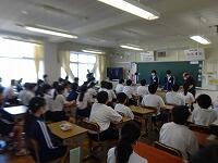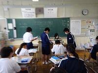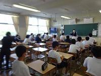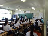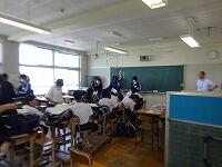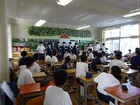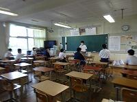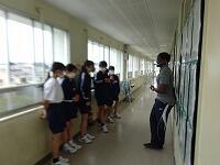 6月25日(木)予報通りに曇りになりましたので放課後は部活動ができそうです。5時間目の1年生の英語の授業の様子です。教室内では教科担任のノートチェックが行われていました。その時間に班ごとに順番に本校のフランシス・ガヤALTとフリートークも行っていました。1年生の英語力をどのくらい発揮できたでしょうか。