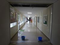 6月25日(木)登校時は強い雨が降っていて制服が濡れてしまった生徒もいました。自転車通学者も雨の中、頑張って登校してきました。自転車置き場に雨合羽が広がっている光景がしばらく続くと思います。替えの靴下やタオル等、濡れてしまった時のための準備も必要な季節です。校内では図書室前の工事はほぼ終わりましたが、雨漏りの修繕が残っています。今日は雨天のため朝の体力づくりは中止でした。体育科によりますと例年より女子は運動能力や体力の低下が見られるとのことです。やはり休校中の運動不足が要因でしょうか。体育館では3年生の女子がバレーボールを行っていました。授業だけでなく様々な機会をとらえて運動不足解消に努めたいと思います。