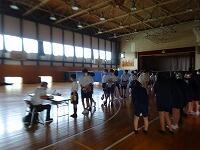 6月26日(金)本日は雨が降らず、予定通りに朝の体力づくりを行うことができました。本日は午前中は心臓検診のためノーチャイムになっています。体育館に朝から保健師さんが集まり、養護教諭と共に準備を行っていました。1時間目よりクラスごとに検診が始まっています。