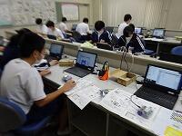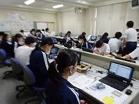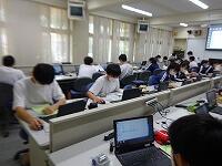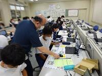 6月29日(月)1時間目の3年生の技術科の授業です。コンピュータ室で「プロロボ」という教材でプログラミングの学習を行っていました。ロボット車にプログラミングで走行の指示を出して動かします。「難しい」と言いながら熱心に取り組んでいました。本日は部活動休養日のため一斉下校となります。