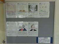 6月29日(月)3年生音楽の休校中の課題が3年各クラスの廊下に掲示されていましたが、その中から選ばれた優秀作品が音楽室前に掲示されました。「日本の音楽家」や「現代の作曲家」について各派に分けて調べたレポートです。特にイラストは力作が目立ちます。ご来校の際にはぜひ1階音楽室前でご覧ください。