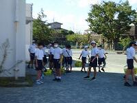 本日は熱中症警戒アラートが発表されていましたので放課後の屋外の部活動は、全校委員会が終了して顧問と部員で全員集まるまで校長、教務主任、部活担当の監督のもと日陰で簡単な練習や土日の試合の準備等をさせました。全員が集まって実際に活動できたのは15分から20分程度でしたので熱中症を出すこともなく下校することができました。明日以降も熱中症が警戒されますので睡眠を十分にとる、朝食しっかり食べる、水分を適切に補給する、涼しい服装で活動することを学校でも指導しておりますが、ご家庭もご指導よろしくお願いいたします。