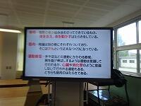 本日は熱中症警戒アラートが発表されていましたので放課後の屋外の部活動は、全校委員会が終了して顧問と部員で全員集まるまで校長、教務主任、部活担当の監督のもと日陰で簡単な練習や土日の試合の準備等をさせました。全員が集まって実際に活動できたのは15分から20分程度でしたので熱中症を出すこともなく下校することができました。明日以降も熱中症が警戒されますので睡眠を十分にとる、朝食しっかり食べる、水分を適切に補給する、涼しい服装で活動することを学校でも指導しておりますが、ご家庭もご指導よろしくお願いいたします。