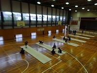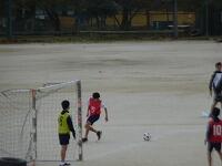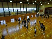 11月20日(金)1年生の体育の様子です。男女の種目が入れ替わって男子がグラウンドでサッカーを、女子が体育館でマット運動を行っています。